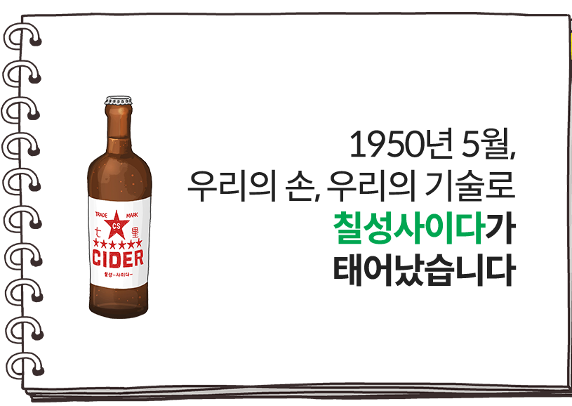 일곱명의 성씨를 따서 만든 브랜드가 바로 칠성. 아~ 정말 생각지도 못한 이름이었다니... 칠성사이다 웹사이트에 <70주년 기념관> 링크를 보면 좀더 재밌는 예전 이야기들이 있으니 참고하시길. ☞ chilsungcider70.com